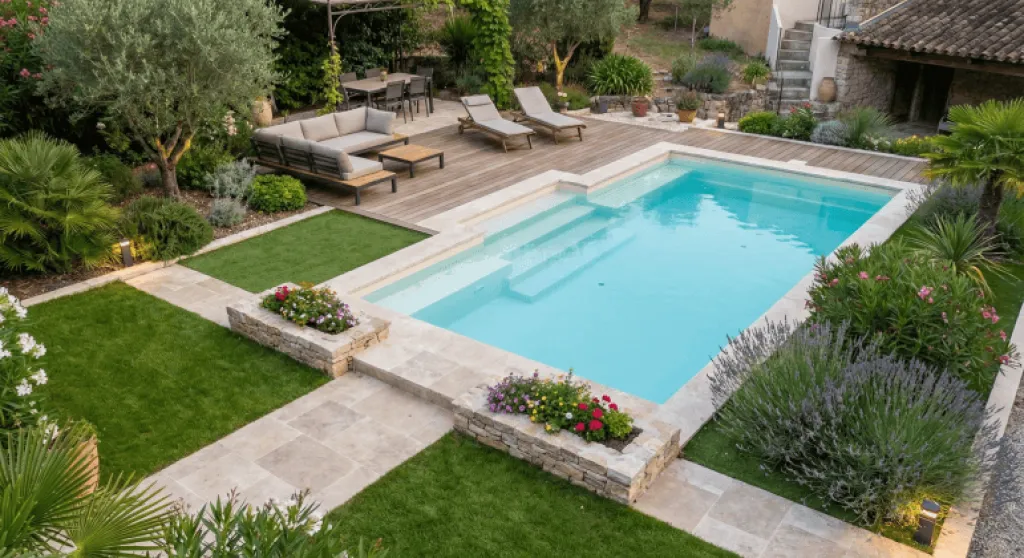 Charme et originalité sont les maîtres-mots pour cette nouvelle version moins de 10m² du modèle Paloma. Avec son escalier central légèrement déporté, cette mini piscine conserve tout le style novateur et l’esprit convivial de sa grande sœur, tout en s’adaptant aux terrains les plus exigus. Les doubles banquettes de chaque côté de l’escalier offrent toujours deux fois plus de détente, pour des moments de plaisir à partager. Grâce à son format compact, la Paloma 4 ne nécessite aucune démarche administrative, et devient la solution idéale pour profiter d’une vraie piscine, même dans les petits jardins.